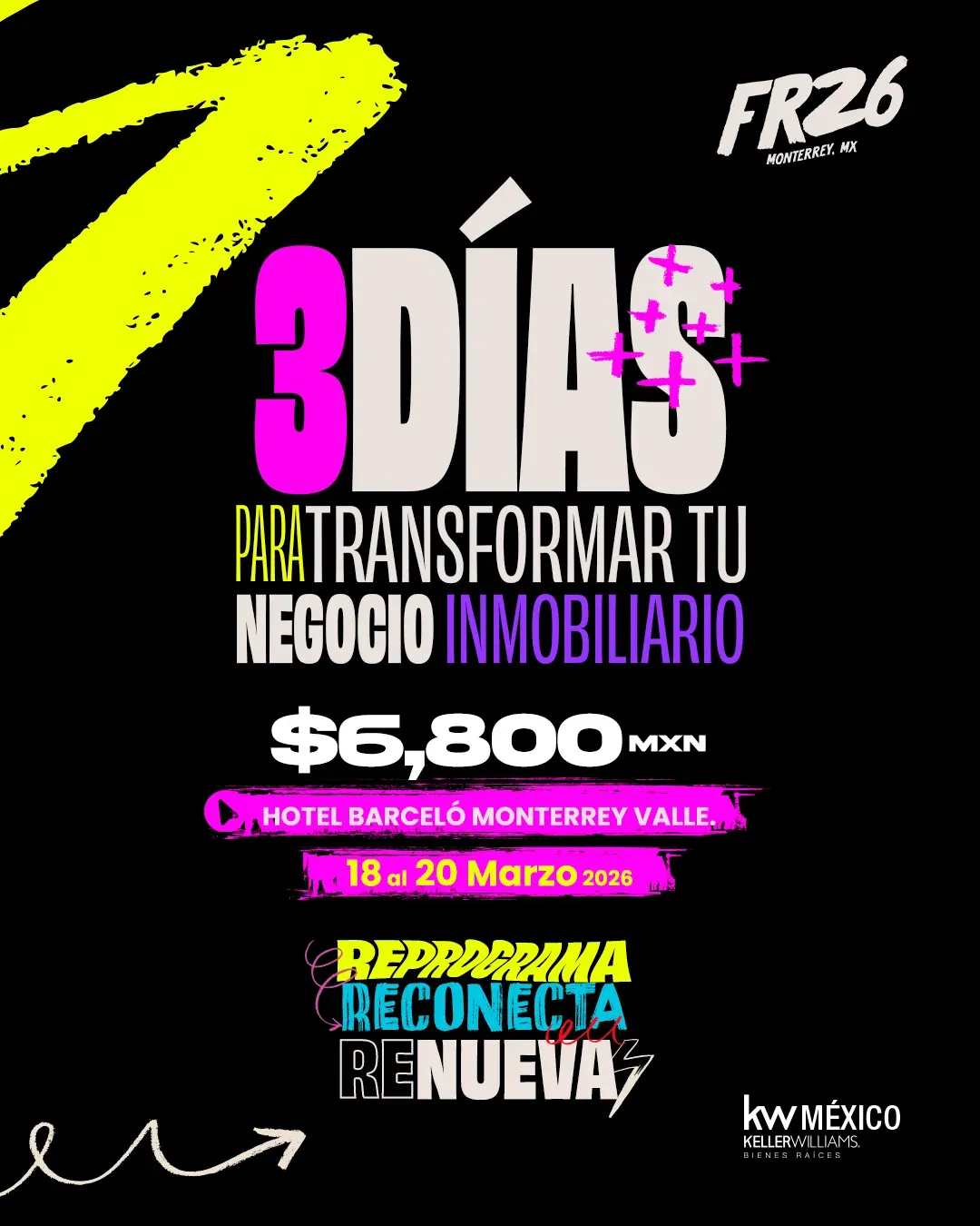 Únete a más de 800 agentes en Monterrey, N.L. para una semana de entrenamientos de alto nivel, networking e inspiración que llevarán tu negocio al siguiente nivel.